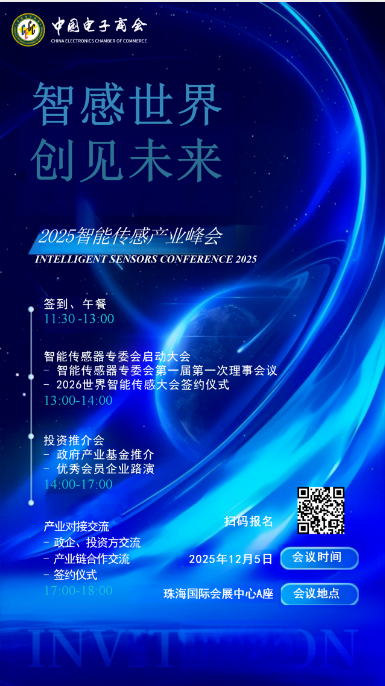 2025年12月5日,中國電子商會智能傳感器專業(yè)委員會第一屆一次理事會會議在熱烈氛圍中圓滿召開。本次會議匯聚了智能傳感器領(lǐng)域的頂尖專家、企業(yè)領(lǐng)袖、知名投資機構(gòu)以及多地政府領(lǐng)導(dǎo)出席,共同見證了這一行業(yè)重要時刻。